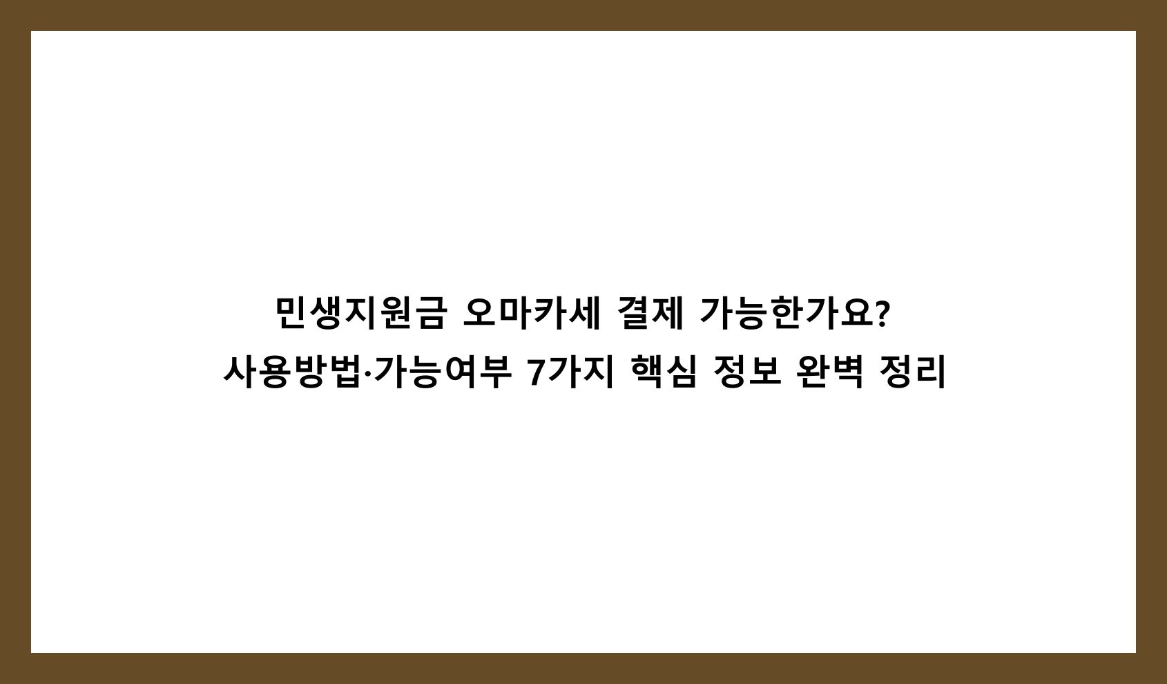 1. 민생지원금, 오마카세 결제 가능한가요?